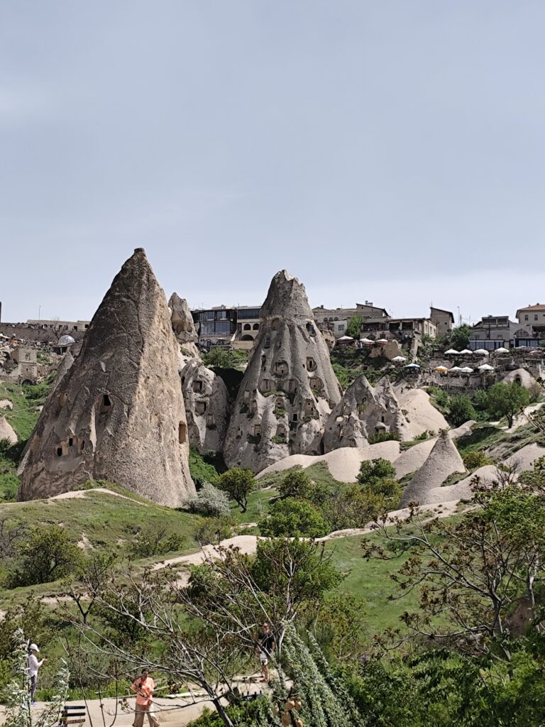 Isso mesmo: famílias inteiras viveram (e algumas ainda vivem) dentro das cavernas escavadas nessas pedras. Hoje, muitas dessas cavernas viraram hotéis charmosos, restaurantes aconchegantes e até lojinhas de artesanato.